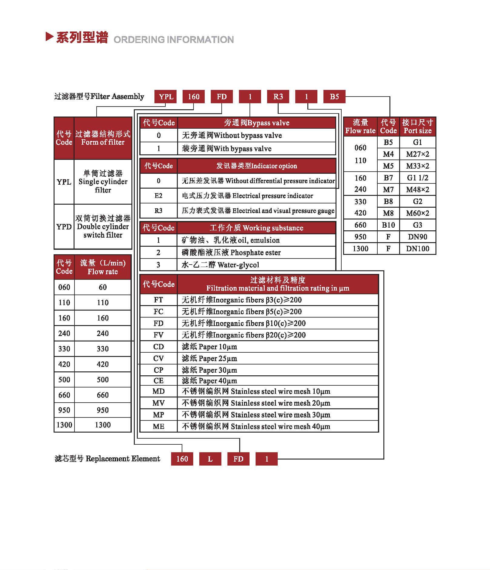 注:*為過濾精度,若使用介質(zhì)為水—乙二醇,公稱流量160L/min,過濾精度10μm,帶CYB—I型發(fā)訊器,則過濾型號(hào)為RF•BH-160×10Y,濾芯型號(hào)為HL00160R010BN/HC。